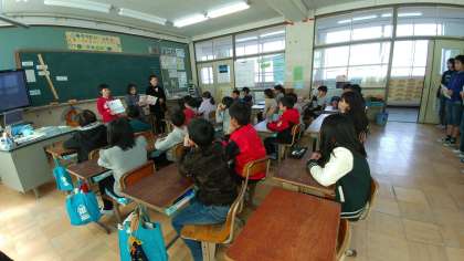 「4年生に委員会活動をすいせんしよう」というテーマで,これまで話し方の工夫や,写真の見せ方などについて話し合ってきました。