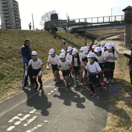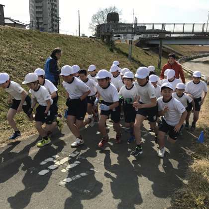 8日(木)に,持久走記録会を行いました。「友だちに離されないように何とか付いていこうとする姿」「ゴールまで歩かずに走り続けようとがんばる姿」が印象的でした。写真は,男子と女子のスタートの瞬間です。