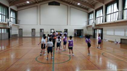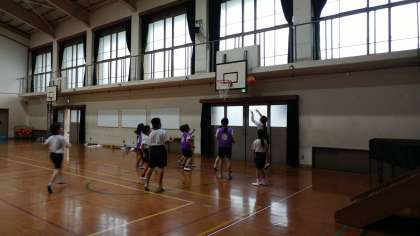 今週は部活動体験入部期間になっています。外はあいにくの雨で総合運動部はできませんでしたが,体育館ではバスケットボール部の活動がありました。5年生・6年生のお手本を見ながら,一生懸命練習を進めていました。