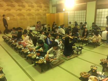 今日一日のことを友達と話しながら,楽しく夕食をいただきました。みんなで食べた夕食はきっとよい思い出となったでしょう。