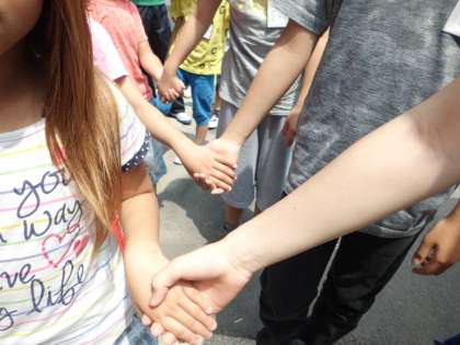 6年生と1年生が手をつないで入場しました。