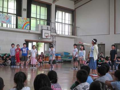 今日は,1年生を迎える会でした。5年生は,「堂々と,やりきる自分」を目標にして,自分たちでシナリオを考えた『5年生ドラえもん』の劇をしました。「1年生が困っているときには,いつでも5年生ドラえもんが助けに行きます!」というテーマの劇でした。