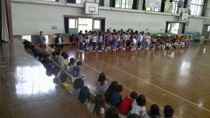 1年生を迎える会がありました。「さんぽ」の曲を歌とダンスでプレゼントしました。1年生が一緒に踊ってくれる姿や,歌を口ずさんでくれる姿が見られて,3年生の子どもたちもとても喜んでいました。