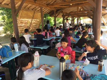 みさきの家に到着し,入所式を終え,昼食中です。全員元気です。