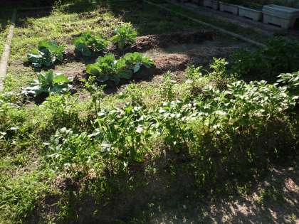 奥には,3年生のキャベツがあります。モンシロチョウの幼虫が,この葉を食べてすくすく成長していることでしょう。今後の観察が楽しみです。
