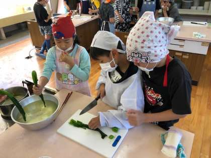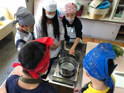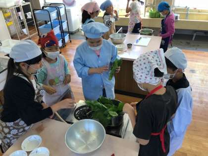 ゆでる調理として,ほうれんそうのおひたしを作りました。どの班も手順通りに進め,協力して調理をすることができていました。