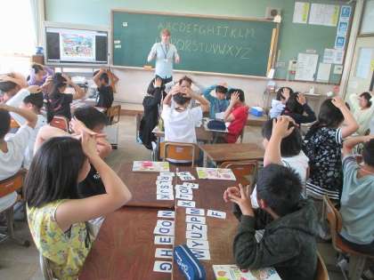 今日の外国語活動は,5年生になって初めてキャメロン先生との学習でした。大きなカードを使いながら,アルファベットに親しめるゲームをしました。普段の学習とはまた違った雰囲気の中で,学習を進めていました。