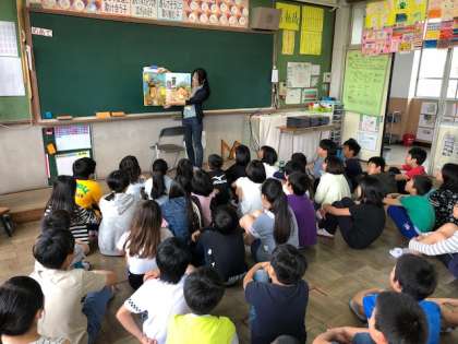 朝読書の時間に,図書館ボランティアさんに読み聞かせをしていただきました。都道府県の県名をダジャレで面白く紹介した本でした。子ども達も,楽しく読み聞かせを聞いていました。