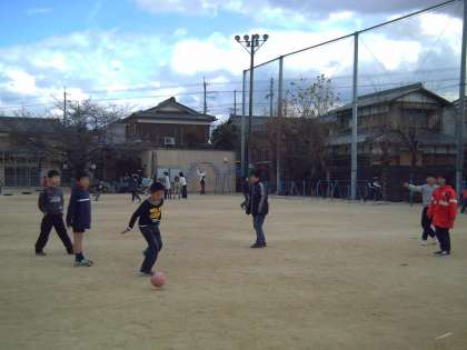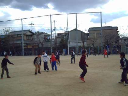 昼休みは,運動場でなわとびやドッチボールをしている