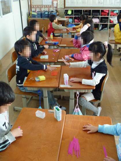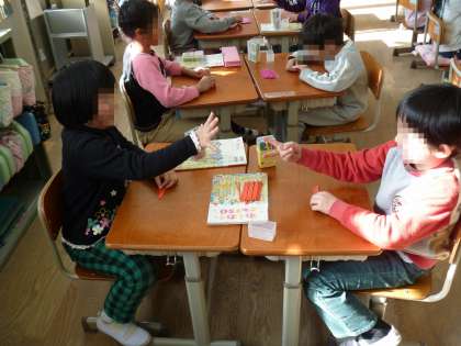 算数では「大きいかず」の学習をしています。20〜100までのかずを早く正確に数えたり書いたりすることができるように数え棒を使ってゲームをしています。