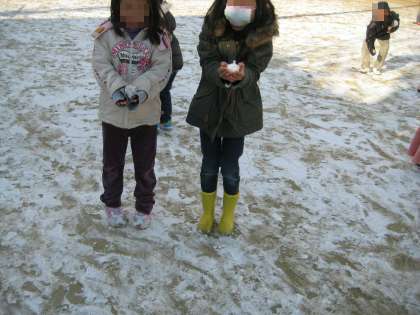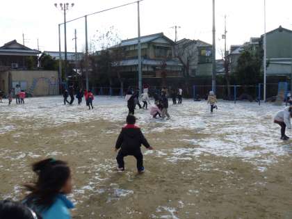 わーい,わーい!子どもたちの歓声がグラウンドに響きます。納所に雪が降ったぞ!!