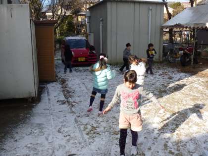 冬でもなかなか積もることのない納所にもうっすらと雪が積もりました。早速朝からみんなで遊びました。