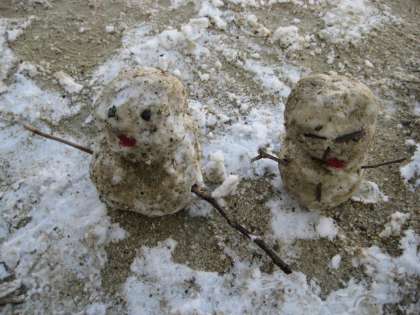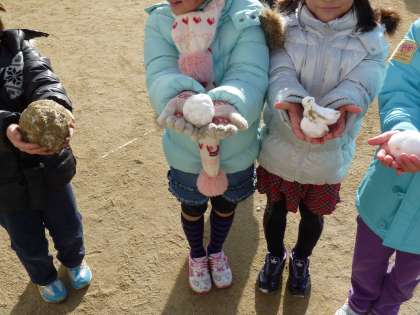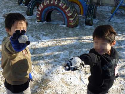 ちょうど生活科で「冬を元気に」という単元に入ったところでした。雪合戦だ!!っと言うほど雪はありませんでしたが,むりやり雪だるまを作っていました。手が冷たかったあ〜!