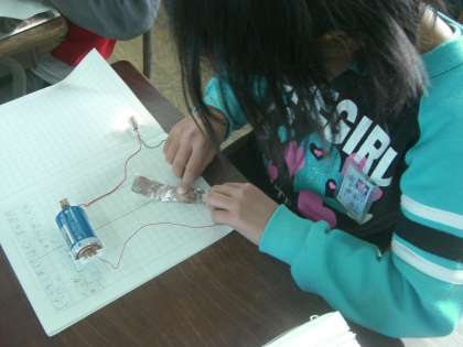 「豆電球をつないで、あかりがついたら電気が通ってるっていうことや!」