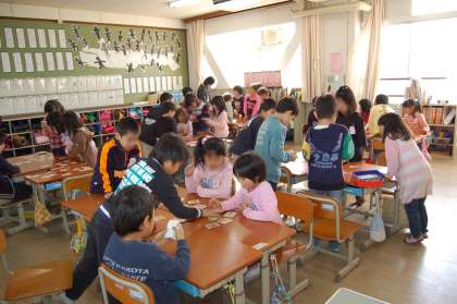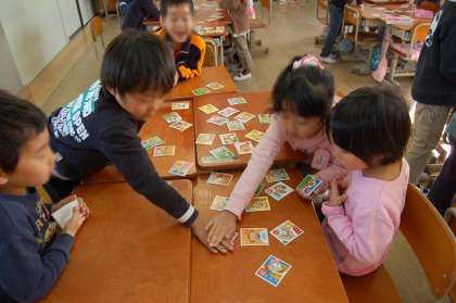 「ふゆをあそぼう」のなかでカルタで遊びました。どの子の目つきもかなり真剣でした。