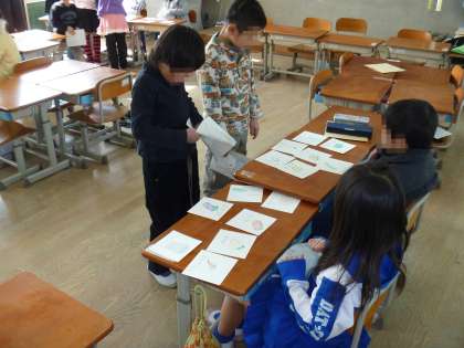 まずはクラス内で「おみせやさんごっこ」に挑戦しました。「いらっしゃいませ。何にしますか。」,「これはいくらですか?」「おすすめは何ですか?」などの言葉が飛び交いました。わずか数分で売り切れ店続出!「もっと商品を増やさなきゃ」と反省点が見つかりました。