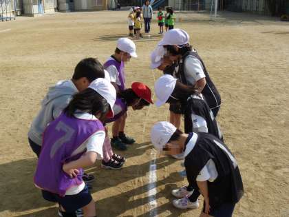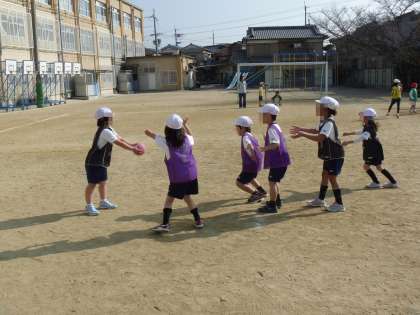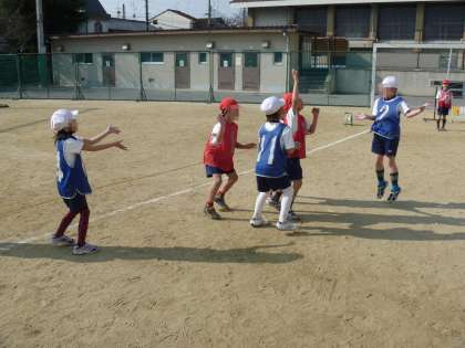 体育ではパスゲームをがんばっています。上手にパスをつないでゴールマンにわたすと1点!…とは言ってもなかなか思うようにはいかず。ボールを思うところに投げられないし,思うようにつかめないしでてんやわんや。毎回接戦?です。
