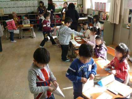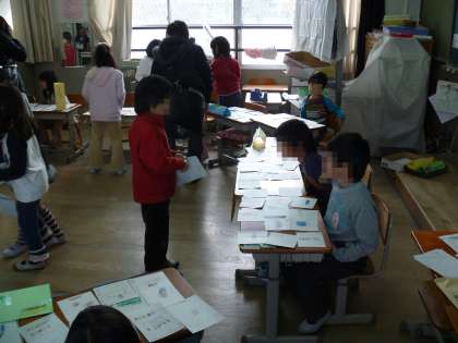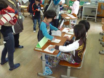 満員御礼の「納所商店街」。保護者の方もお客さんで参加しました。子どもたちは大興奮で,品切れ店続出となりました。
