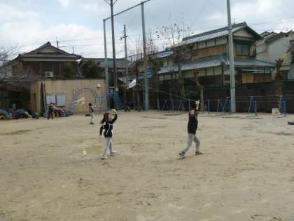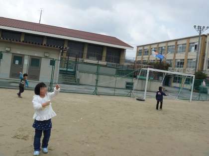 手作りのたこをあげました。風があって思ったよりもよくあがりました!みんな汗をかいて走ってました。