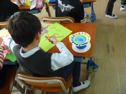 ヒラヒラコロコロは転がして楽しむ作品です。図工展後のそれを楽しみにきれいに仕上げました。