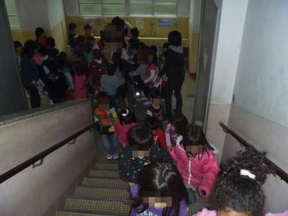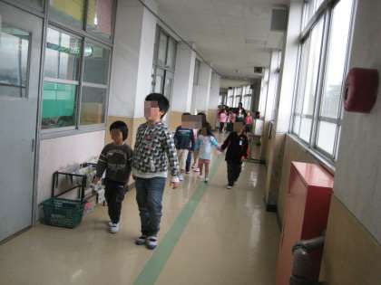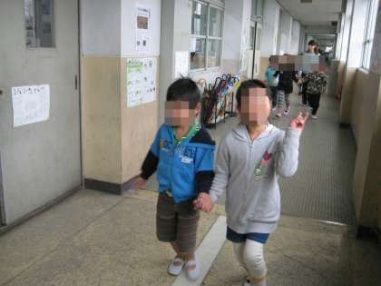 いよいよ学校案内です。グループごとに手をつないで楽しく案内しました。ただ他の教室にはかなりご迷惑をおかけしました。