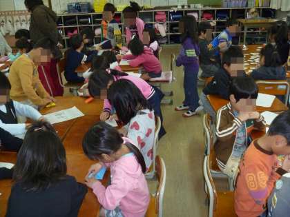 教室に入ってグループごとに交流しました。かるた,お絵かき,折り紙など楽しいひとときを過ごしました。