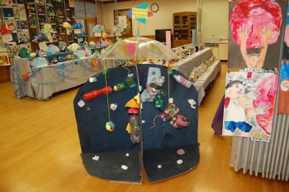 図画工作展に3組の共同作品(納所小・横大路小・明親小・美豆小)「無限の宇宙」が本日だけ展示されています。