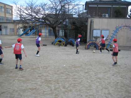 ボールの蹴り方や受け方の技能も少しずつ向上してきました。