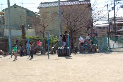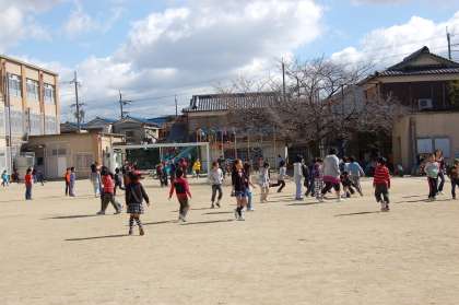 今日は大変寒い朝になりました。しかし,納所の子どもたちは元気に遊んでいます。
