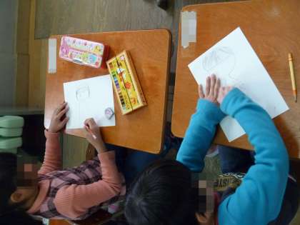 新1年生の教室を飾る掲示物を作っています。新入生のみなさん,安心して来てください。