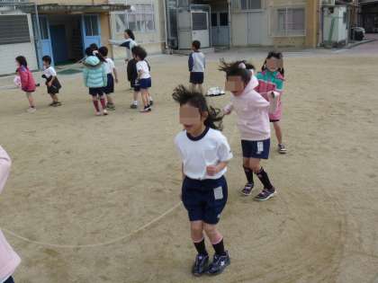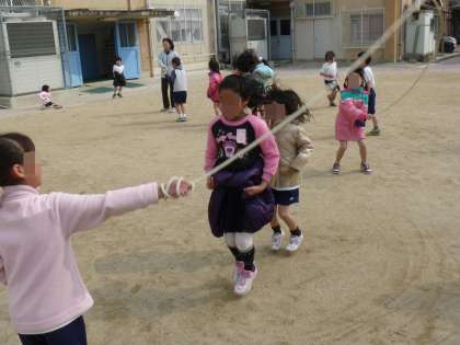 一人が跳んでいるときに二人目が入ってみました。だめです。できる子がやっても5回くらいがやっとです。