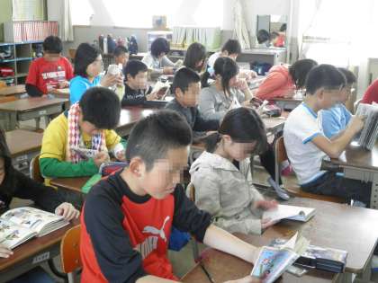 朝休みが終わると、全校のみんなが教室で本を開きます。
