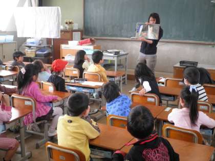 1年生は先生が読み聞かせをしています。