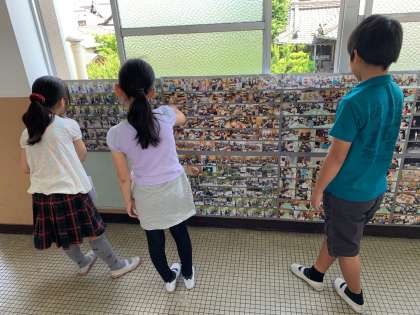 花背山の家の宿泊学習から10日ほどがたち,今日から写真の掲示を始めました。