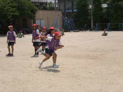 子どもたちは、リードのタイミングやバトンの渡し方を