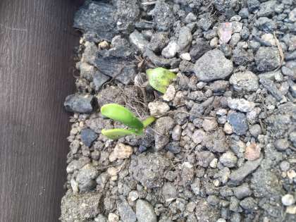 ひまわりの芽がでました。ひまわりの芽はどんな形をしているか分かりますか。