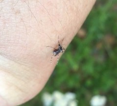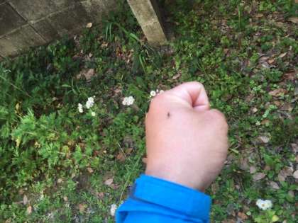 生き物をさがしていると,先生の手に何やら,とまった生き物がいました。