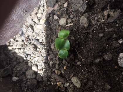 種をまいて10日目です。ホウセンカの芽が出ました。