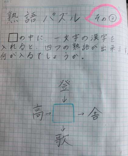 前回の熟語パズルは分かりましたか?ひらめきの力が必要ですね。