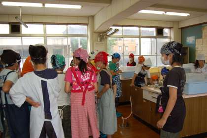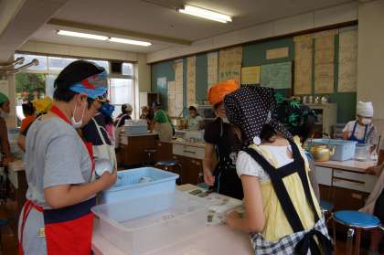 エプロンや三角巾を着ながら学習をする子どもたちは終始笑顔でした。