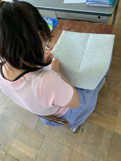 5年生の時にした縫い方を思い出すと,集中してぐんぐん進めていました。