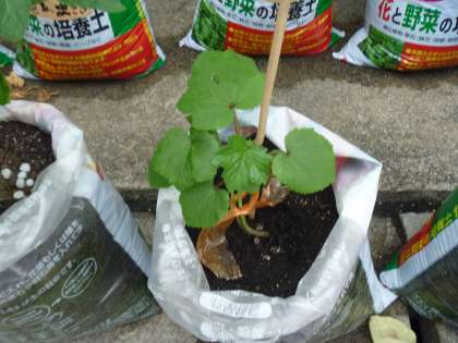 生活科では,夏野菜を育てています。今年はどうも苗が弱く生育が悪い気がします。それとも水やりがあまり……。これはオクラです。あまり手はかからないと思うのですが,まだこんな感じです。