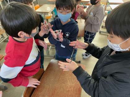 皆で本を見たり,友だちに聞いたりしながら,休み時間もあやとりに夢中です。