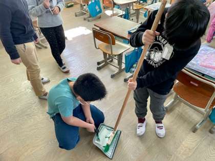 自分の机の周辺だけではなく教室中見渡して,落ちているごみを掃除する姿はとてもすてきでした。