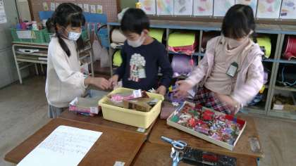 「どんぐり迷路」コーナーもありますね。友だちとなかよく協力しています。