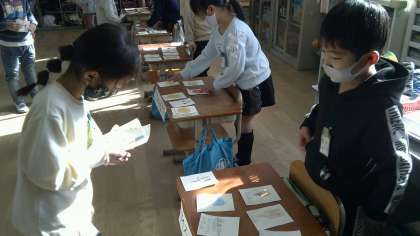 国語科「おみせやさんごっこをしよう」では,一人一人がお店を開きました。何のお店にするか,品物は何にするかを考えました。