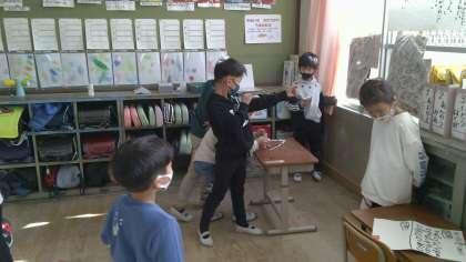 どんぐり鉄砲のコーナーです。思うようにどんぐり玉が飛ばず,何度も改良を繰り返し,やっと完成しました。