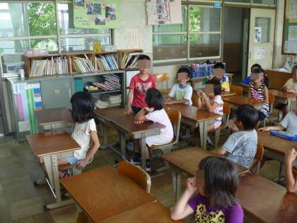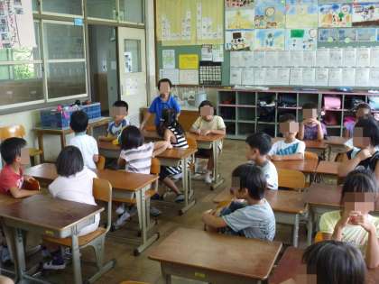 18日は登校日でした。1組24人,2組29人の高い出席率でした。今日までの宿題を集めた後,一人ずつ夏休みのお話を聞きました。海やプールに行った人,花火大会に行った人,遊園地にいった人,おばあちゃんの家に行った人…など。日焼けした顔でうれしそうに話してくれました。