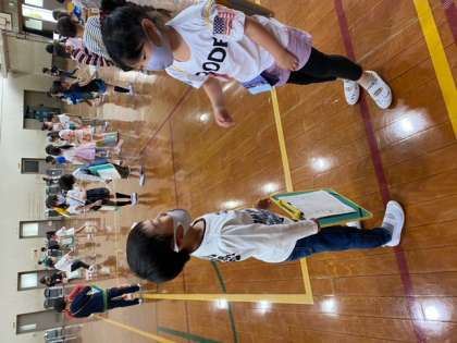「名前は**です。」「すきなものは**です。」「よろしくお願いします。」