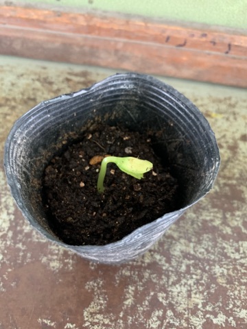 先週植えたツルレイシの芽が出始めました!!